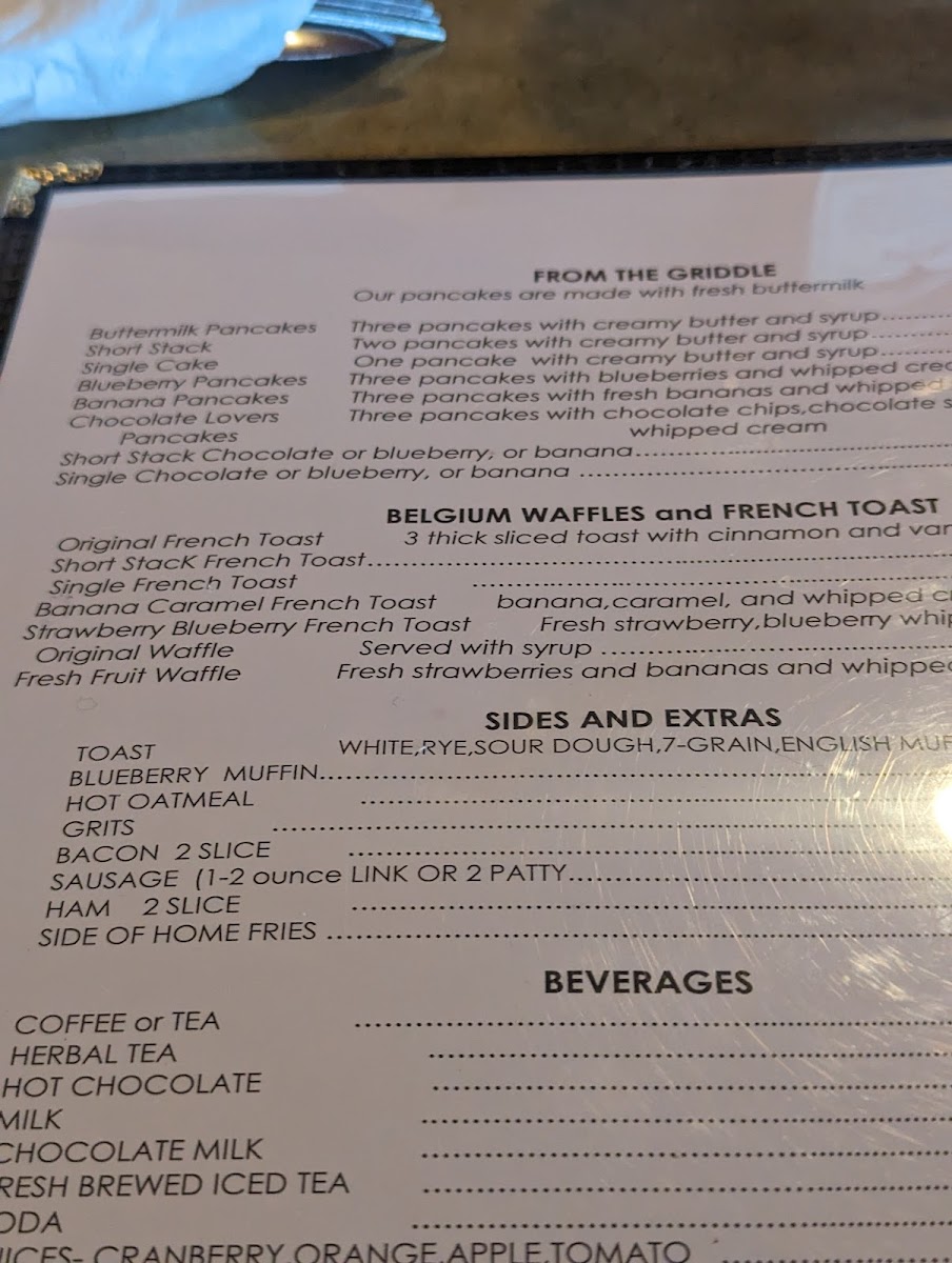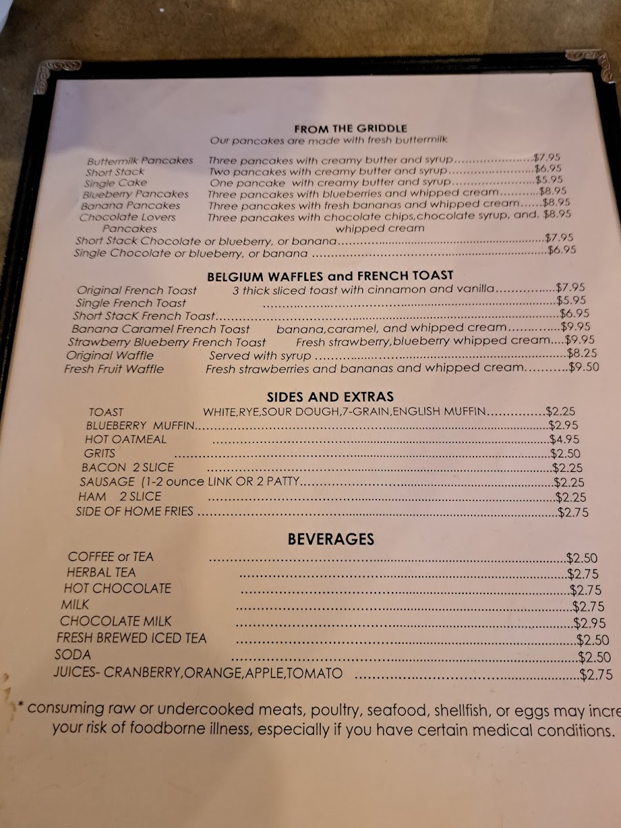 “ Great place. The portions are a great value for the price paid. The server was very personable with our group. The food was delivered quickly and tasted good. We had breakfast and everyone seemed to enjoy what they had. I hear that lunch is good also. ”